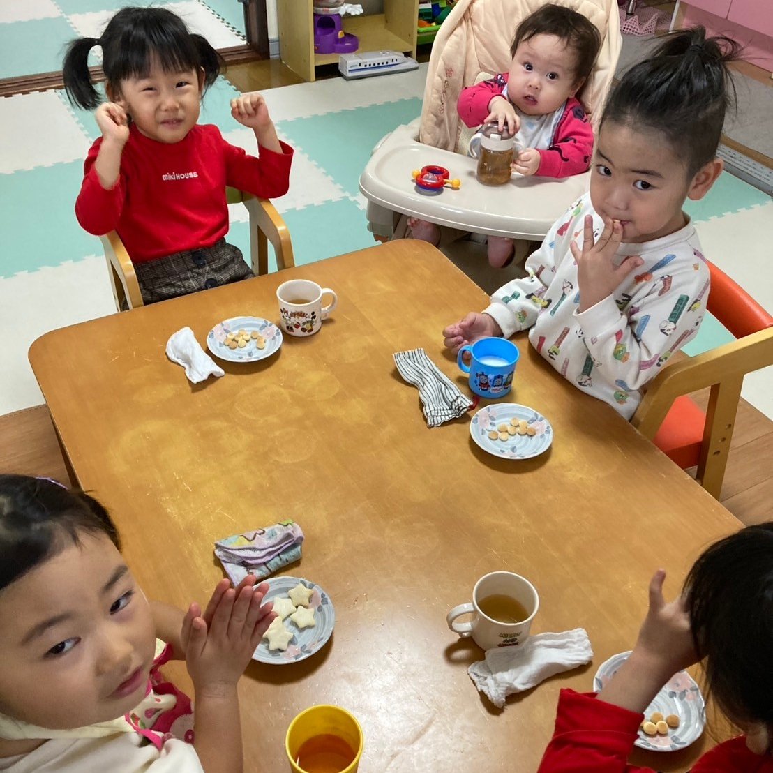 お楽しみのおやつを食べて、好きなあそびを楽しみます
